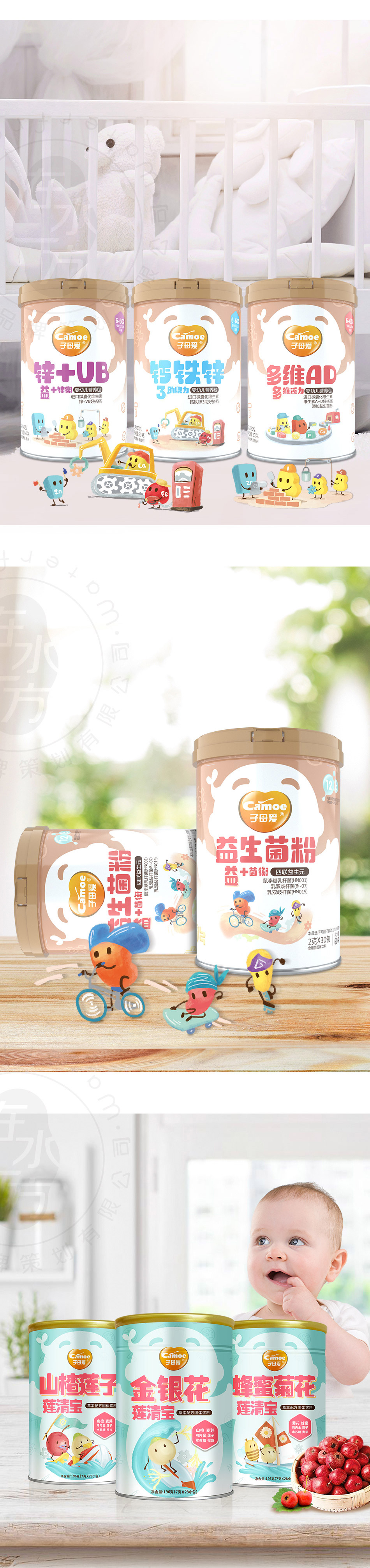 項(xiàng)目方案:子母愛品牌圍繞嬰童輔食營(yíng)養(yǎng)品領(lǐng)域打造有情感有品質(zhì)有親和力的品牌形象,迎合當(dāng)前年輕消費(fèi)市場(chǎng)的審美和體驗(yàn)需求,用原創(chuàng)性手繪風(fēng)格增加產(chǎn)品訴求力,提升陳列效果的同時(shí)也有助于品牌口碑和營(yíng)銷的推進(jìn)。