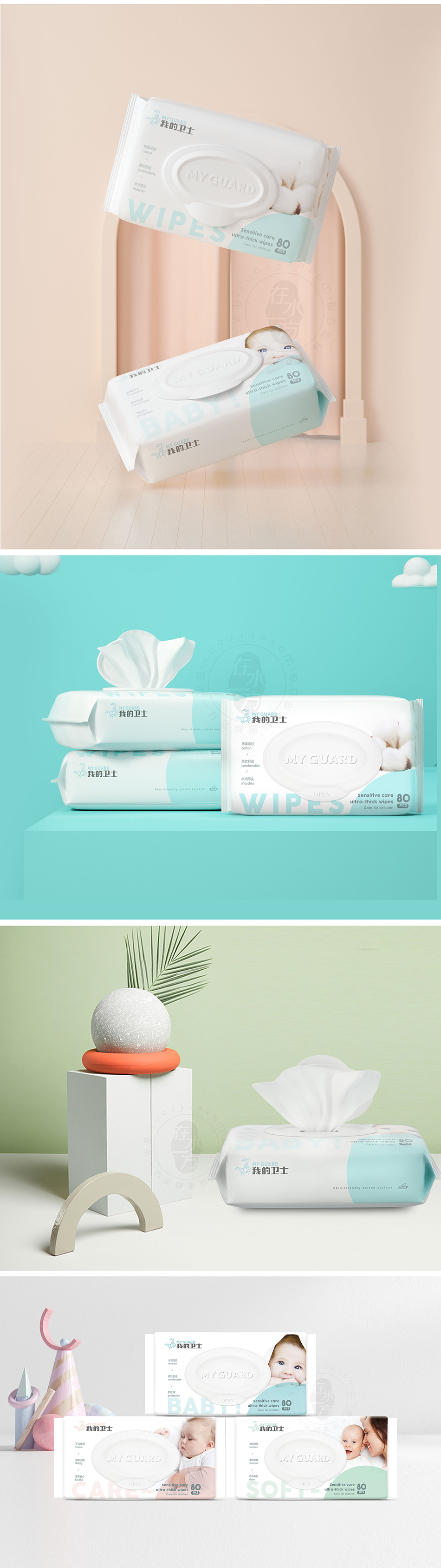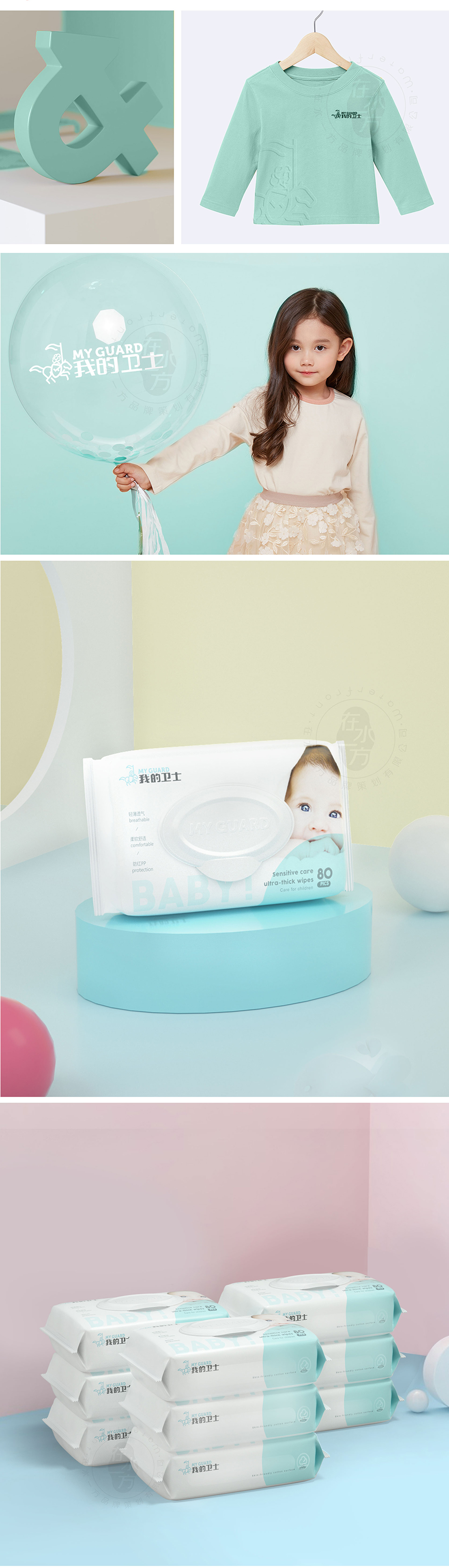 服務(wù)方案:國際化品牌形象塑造,結(jié)合新生代母嬰人群的認知特點,有意地塑造簡約清新有品質(zhì)感的產(chǎn)品外觀,讓我的衛(wèi)士成為新生母嬰家庭的青睞品牌。