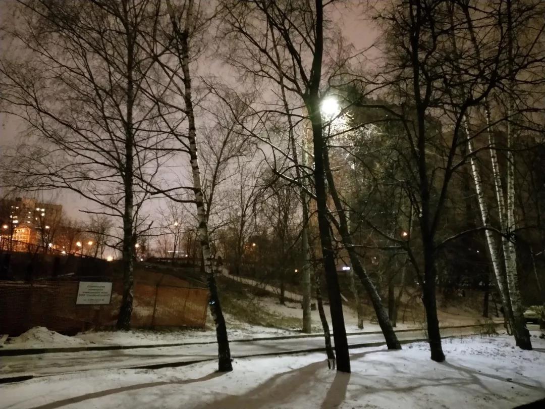 但天色似乎已晚,路上早在四點(diǎn)半就亮起了燈光。瓢潑大雪覆蓋了整個(gè)莫斯科,最深的地方已有五公分,讓每一處風(fēng)景都有了冰雪的布景,仿佛置身在童話。