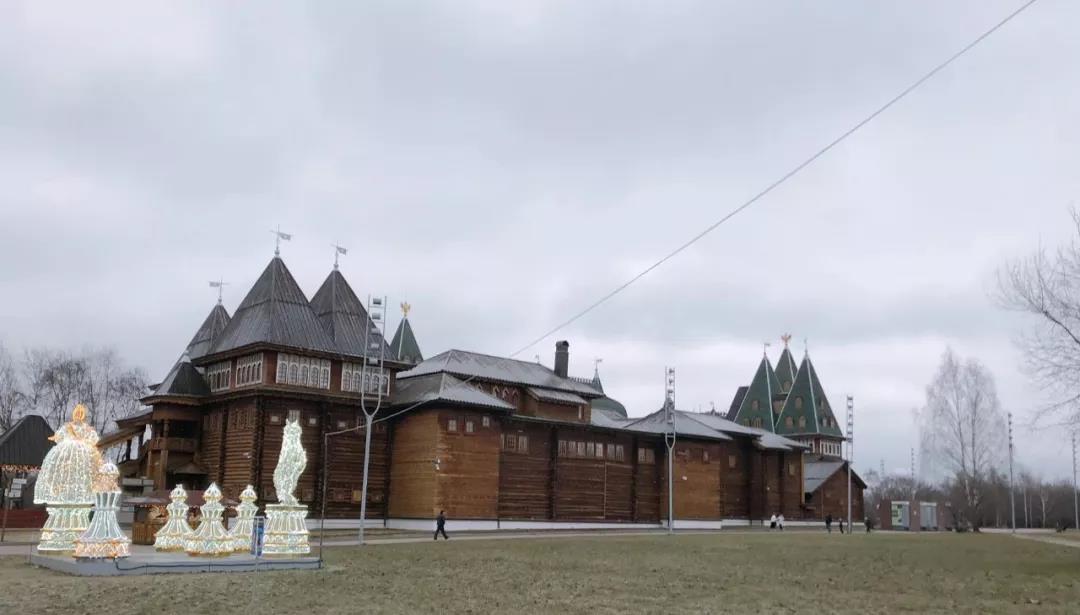 下一站是卡洛明斯克莊園,它擁有“世界第八大奇跡”的美譽(yù),主宮殿由全木質(zhì)結(jié)構(gòu)并采用榫卯原理建成,共有270個(gè)房間和3000扇窗戶,絕對(duì)是工藝的極高造詣。這時(shí)天上零星下起了小雪,為行程帶來了幾分美意。