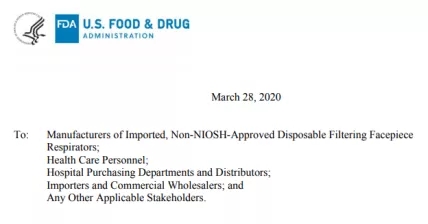 3月28日,在美國(guó)FDA新出臺(tái)的一次性呼吸器緊急使用授權(quán)(EUA)清單中,把中國(guó)KN95防護(hù)產(chǎn)品和GB2626-2006標(biāo)準(zhǔn)的產(chǎn)品都取消掉了。