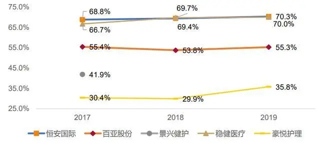 從女性衛(wèi)生用品業(yè)務(wù)的毛利率來看,恒安國際和穩(wěn)健醫(yī)療的毛利率一騎絕塵,2019年均在70%左右。百亞股份次之,2019年為 55.3%。景興健護(hù)的商業(yè)模式為研發(fā)貼牌,2017年毛利率為 41.9%。豪悅護(hù)理的商業(yè)模式為 ODM代工,2019 年毛利率為 35.8%。