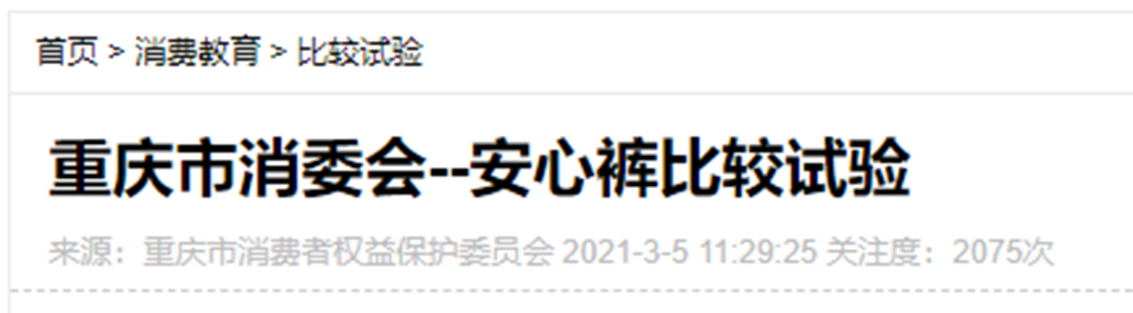 經(jīng)過(guò)深入了解,發(fā)現(xiàn)重慶市消費(fèi)者權(quán)益保護(hù)委員會(huì)的確曾經(jīng)發(fā)布過(guò)關(guān)于安心褲的檢驗(yàn)結(jié)果,此次對(duì)目前市場(chǎng)上比較暢銷的15款安心褲開展了比較試驗(yàn),主要對(duì)安心褲的衛(wèi)生性能、安全性能、功能性指標(biāo)、舒適性指標(biāo)等進(jìn)行測(cè)試。
