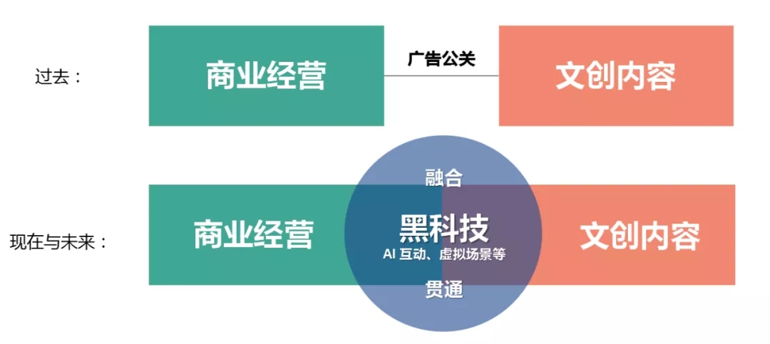 現(xiàn)在與未來(lái):商業(yè)運(yùn)營(yíng)和文創(chuàng)內(nèi)容之間形成彼此需要、高度融合的關(guān)系,中間的催化劑是不斷變革發(fā)展的黑科技。