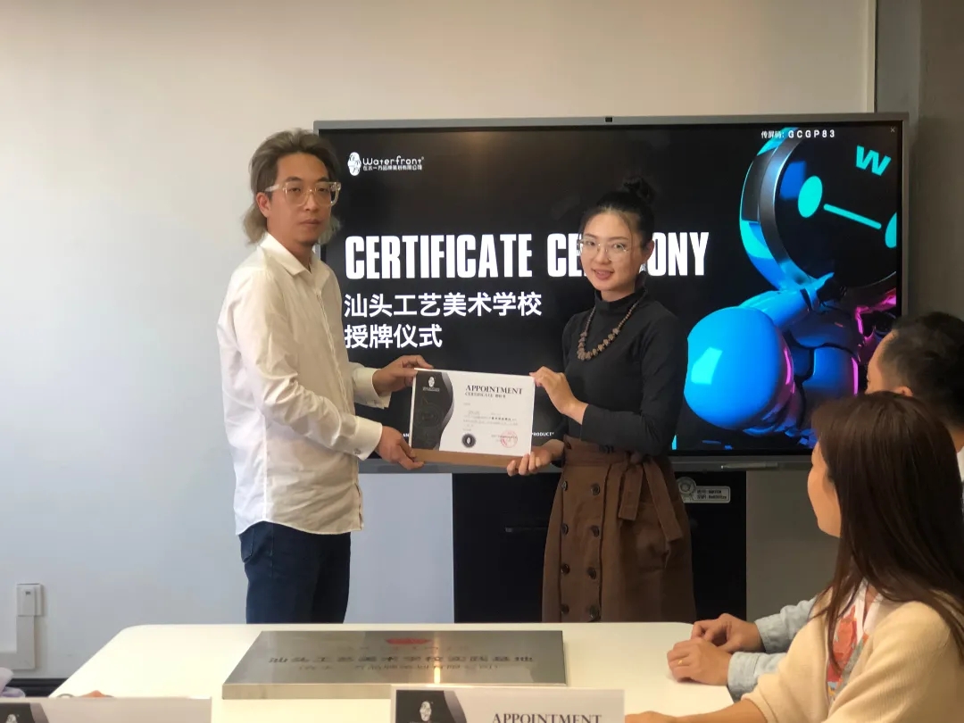 在水一方品牌策劃公司正式掛牌“汕頭工藝美術學校實踐基地”,汕頭工藝美術學校正式掛牌“汕頭在水一方品牌策劃有限公司人才孵化基地”,對合作雙方意義非凡。