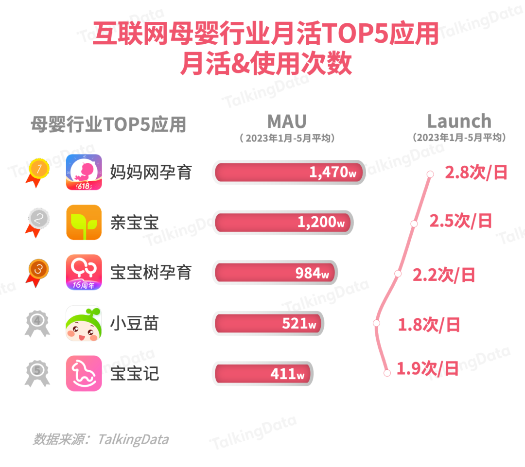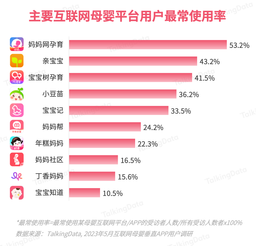 基于TalkingData的母嬰行業(yè)應(yīng)用數(shù)據(jù)及2023 年5月的調(diào)研數(shù)據(jù),報(bào)告對(duì)主要互聯(lián)網(wǎng)母嬰平臺(tái)的月活、認(rèn)知、使用等數(shù)據(jù)進(jìn)行了統(tǒng)計(jì)分析。