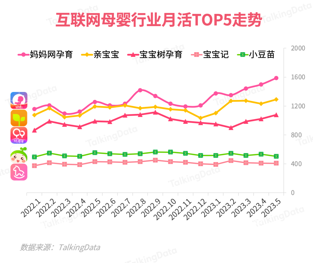 在行業(yè)Top 5平臺(tái)的2023年1-5月月活趨勢(shì)上,媽媽網(wǎng)孕育、親寶寶、寶寶樹(shù)孕育均表現(xiàn)出不同程度的增速??赡艿靡嬗谄淠笅胗脩?hù)群體的忠誠(chéng)度和能提供有價(jià)值的版塊/內(nèi)容,媽媽網(wǎng)孕育體現(xiàn)出更為顯著的優(yōu)勢(shì)。