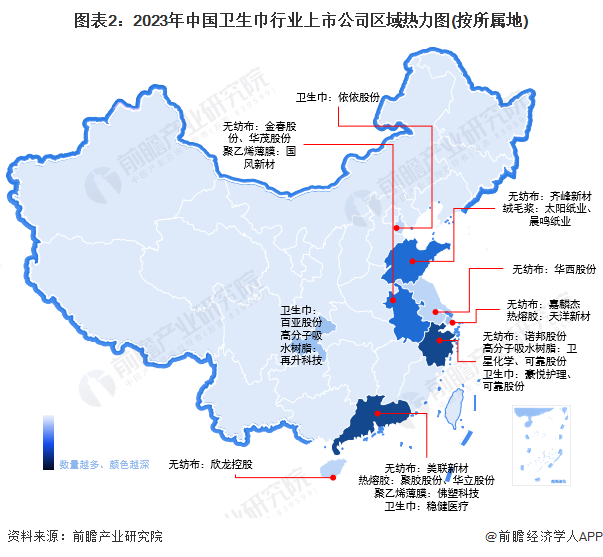據企查貓統計數據,截至2023年9月,全國共有衛(wèi)生巾生產制造企業(yè)116家,其中廣東省衛(wèi)生巾企業(yè)數量最多,為22家。衛(wèi)生巾區(qū)域集中度CR5為67%;CR10為94%。