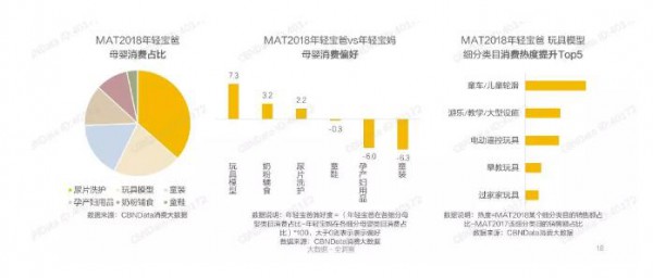 隨著“互聯(lián)網(wǎng)+”的深入發(fā)展,嬰童市場的消費群體正在被重構(gòu)。一直以來我們都認(rèn)為媽媽是母嬰消費市場的主要人群,但近年來,隨著80后、90后年輕一代父母的崛起,再加上社會觀念的轉(zhuǎn)變,越來越多的爸爸參與到育兒活動以及家庭日常消費中,成為母嬰消費新的增長點。一些爸爸帶孩子參加的綜藝在社會上引起熱議,不僅表明全社會對爸爸更加關(guān)注家庭和孩子表示支持和贊同,也表明有更多爸爸愿意參與到育兒活動中來。活躍在育兒平臺上的寶媽寶爸中,85后、90后和95后的年輕爸媽人數(shù)占比達(dá)到七成以上,是育兒的主力軍。其中,奶爸在育兒行為和家庭消費方面表現(xiàn)出和寶媽不同的特點。調(diào)查數(shù)據(jù)也顯示,紙尿褲在年輕奶爸母嬰消費占比中居首位。